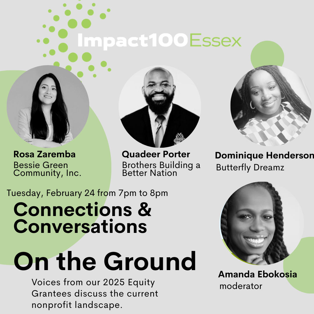 Why Impact100 Essex? How does collective giving work? What challenges does the organization face in the coming grant cycle? Bring your questions and join us for a casual conversation with our leadership team.